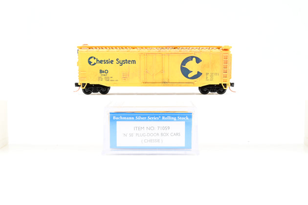Bachmann N Gauge 'Silver Series' iItem No: 71059 'N' 50' Plug-Door Box Cars (Chessie)