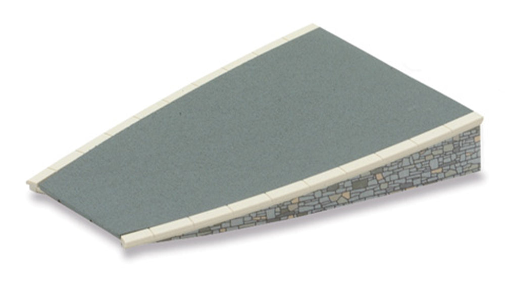 This model platform system is ideal for use with Peco 00/H0 Setrack, Streamline and any other unit trackage system which conforms to British Standard geometry. Straight units are 168mm long, matching the Standard Straight (ST-200). The self adhesive printed strips supplied match either brick or stonework and can easily be applied to the platform edges. Platforms can be made to any length by simply clipping the units together. As supplied the units fit a standard track configuration but it is easy to adapt to suit other situations; just cut the platform surfaces to any of four widths by following the scribed lines on the back. Ramps can be made to one of two widths, and have curved sides to match the second radius curve.